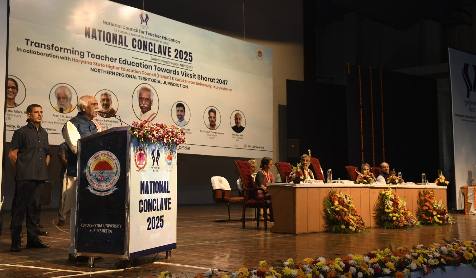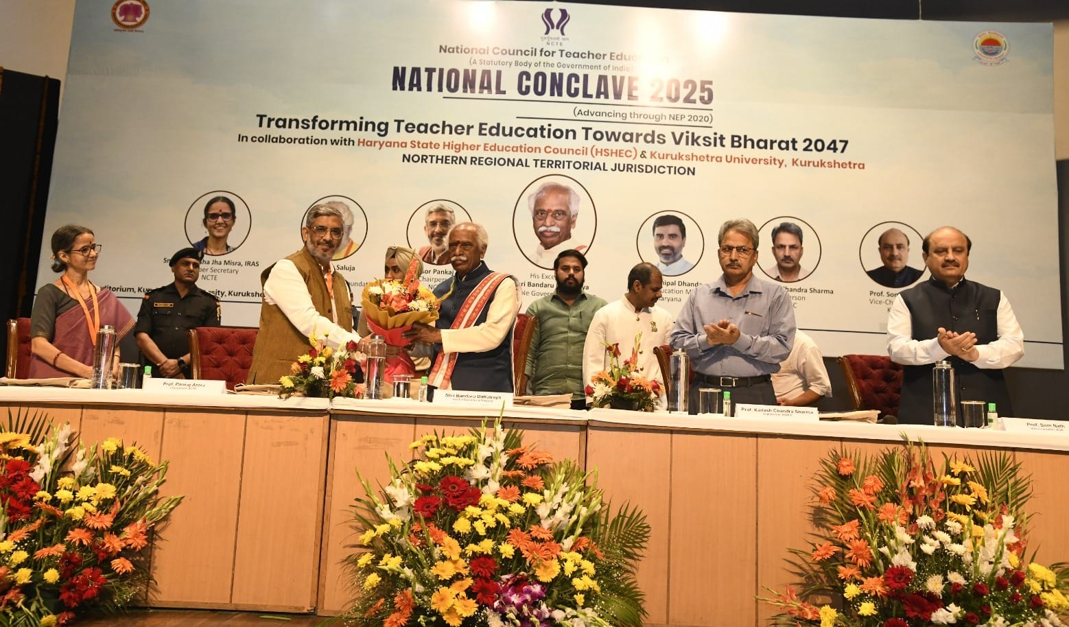 राज्यपाल बंडारू दत्तात्रेय सोमवार को कुरुक्षेत्र विश्वविद्यालय के ऑडिटोरियम हॉल में नेशनल काउंसिल फॉर टीचर एजुकेशन, हरियाणा स्टेट हायर एजुकेशन काउंसिल तथा कुरुक्षेत्र विश्वविद्यालय के संयुक्त तत्वावधान में शिक्षक शिक्षा में परिवर्तन विकसित भारत 2047 की दिशा में’ विषय पर आयोजित दो दिवसीय राष्ट्रीय सम्मेलन 2025 में बतौर मुख्यातिथि बोल रहे थे। इससे पहले राज्यपाल बंडारू दत्तात्रेय, एनसीटीई के चैयरमेन प्रो. पंकज अरोड़ा, एचएसएचईसी के चैयरमेन प्रो. कैलाश चन्द्र शर्मा, कुलपति प्रो. सोमनाथ सचदेवा, एनसीटीई की सदस्य सचिव अभिलाषा झा मिश्रा ने दीप प्रज्ज्वलित किया व एनसीटीई के ध्येय गीत के साथ कार्यक्रम का शुभारंभ किया गया।